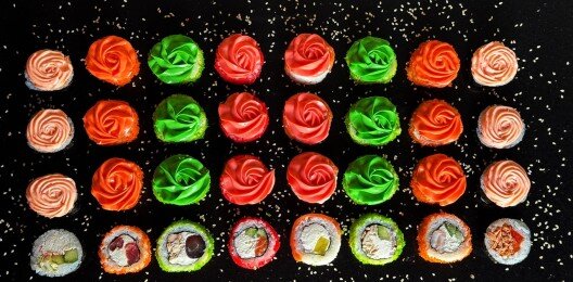 2. бекон, королевская креветка, помидор, дайкон, пекинская капуста;